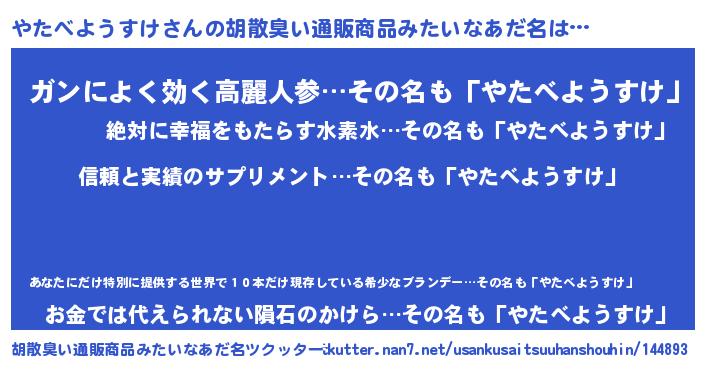 | ヘコむあだ名 | 『やたを』『やたべようすけ(小並感)』 |