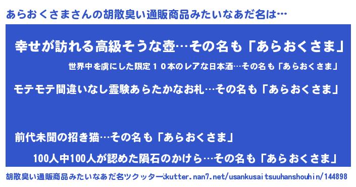 | ヒーロー風カッコイイあだ名 | 『スーパーアラオクサマ』『仮面アラダー』 |