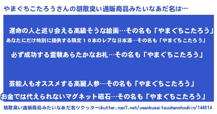 | 肩書あだ名 | 『やまぐちこたろう御曹司』 |