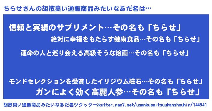 | 肩書あだ名 | 『ちらせ総理大臣』『ちらせ団長』 |