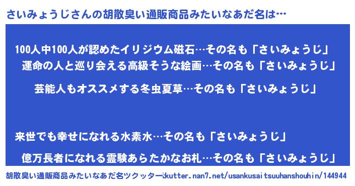 | 恥ずかしいあだ名 | 『サイミョウジデラックス』『さいっちょ』 |