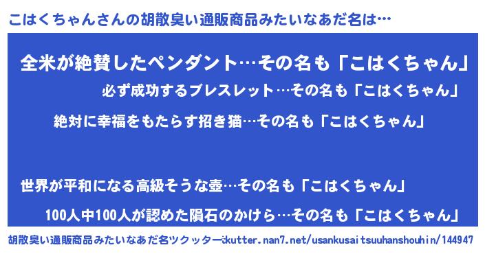 | ヘコむあだ名 | 『こはくちゃん(小並感)』『こはぷりん』 |