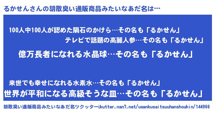 | 意味不明あだ名 | 『ペロリンるかせん』『自称るかせん』 |