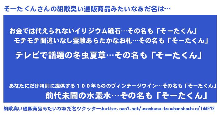 | 意味不明あだ名 | 『自称そーたくん』『永久保存そーたくん』 |