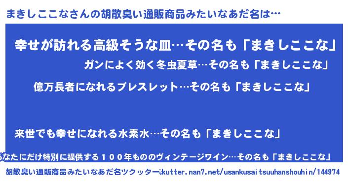 | 恥ずかしいあだ名 | 『プリティーまきしここな』『まきっちょ』 |