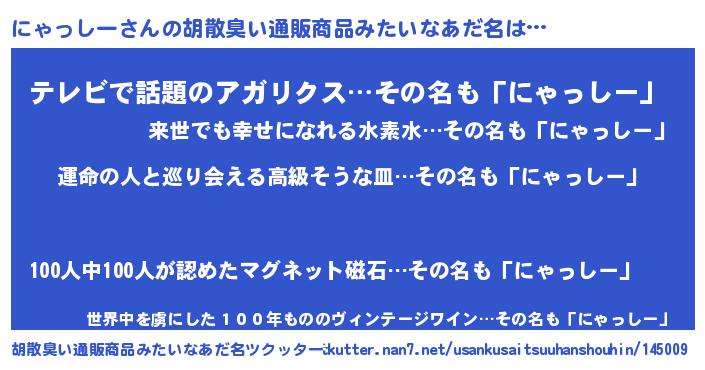 | 肩書あだ名 | 『にゃっしー国家主席』『にゃっしー総統』 |