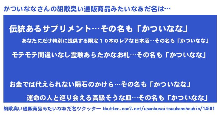 | 男性向けラノベタイトル風あだ名 | 『かついななの憂鬱』 |