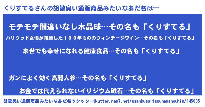 | 意味不明あだ名 | 『永久保存くりすてる』『自称くりすてる』 |