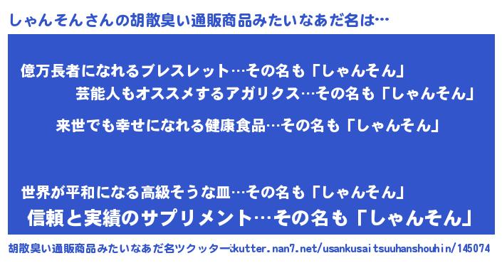 | 意味不明あだ名 | 『永久保存しゃんそん』『自称しゃんそん』 |
