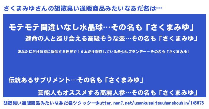 | 伝説のあだ名 | 『封印されしスナイパーさくまみゆ』 |
