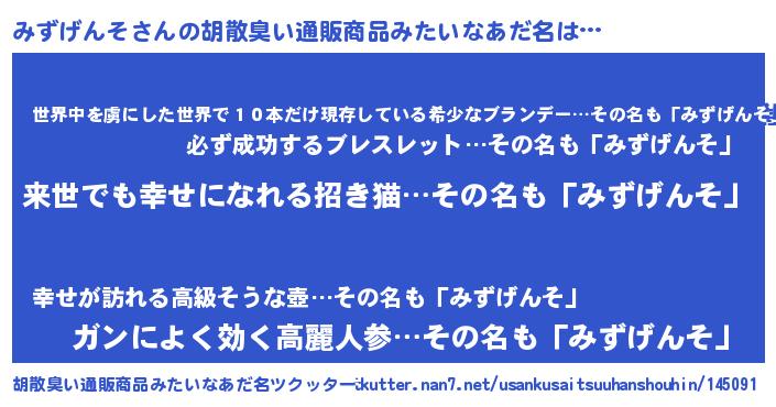 | 意味不明あだ名 | 『永久保存みずげんそ』『自称みずげんそ』 |