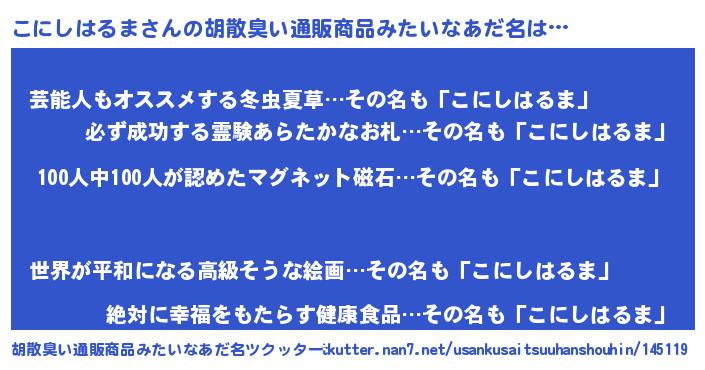 | ヘコむあだ名 | 『こにしはるま(小並感)』『こにっふぃ~』 |