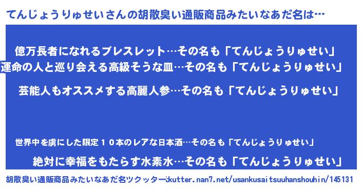 | 意味不明あだ名 | 『自称てんじょうりゅせい』 |
