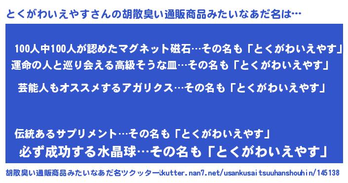 | ヘコむあだ名 | 『とくにゅー』『つくし』『とく太郎』 |