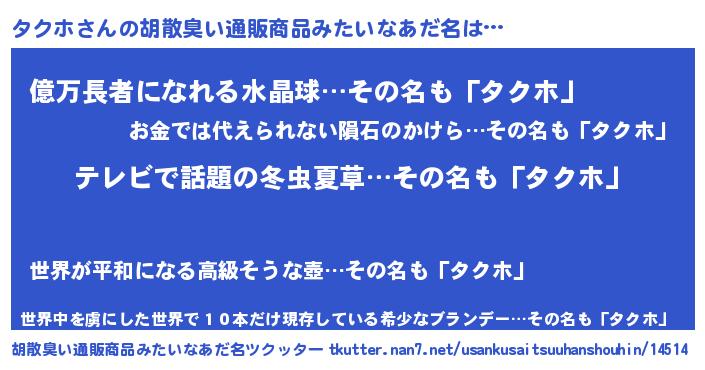 | 意味不明あだ名 | 『なめこ科タクホ属』『自称タクホ』 |