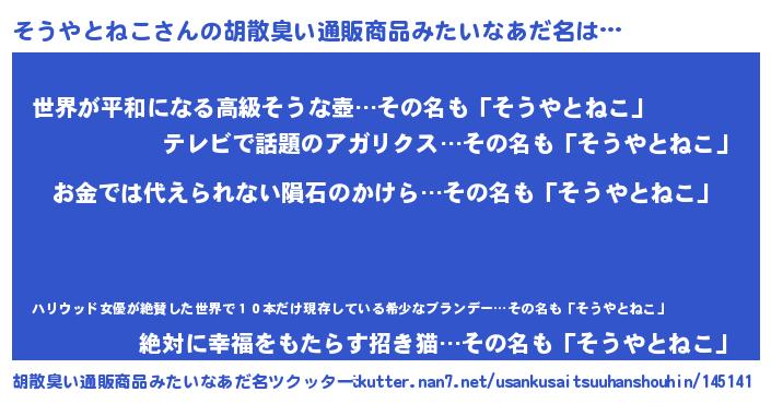 | 女子向けラノベタイトル風あだ名 | 『そうやとねこ恋絵巻』 |
