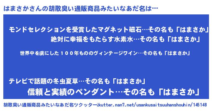 | ヒーロー風カッコイイあだ名 | 『仮面ハマダー』『慈愛の使者はまさか』 |