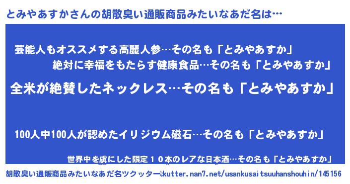 | 男性向けラノベタイトル風あだ名 | 『とみやあすかに滅ぼされるだけの簡単なお仕事です』 |