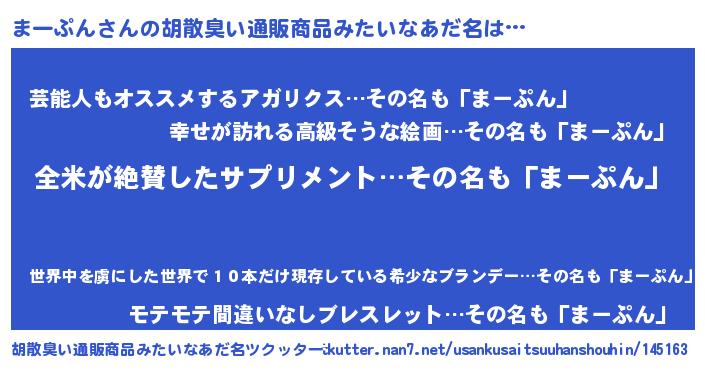 | 意味不明あだ名 | 『とにかく怪しいまーぷん』 |