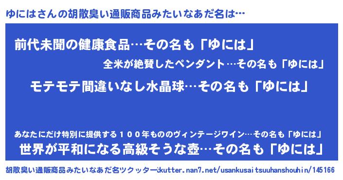 | 恥ずかしいあだ名 | 『プリティーゆには』『ゆにちん』 |