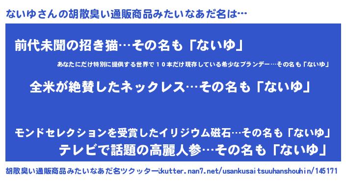 | 意味不明あだ名 | 『とにかく怪しいないゆ』『自称ないゆ』 |