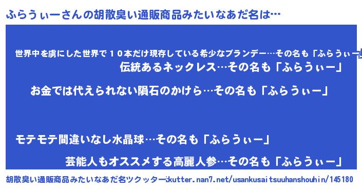 | ヘコむあだ名 | 『ふらっちょ』『ふらっふぃ~』 |
