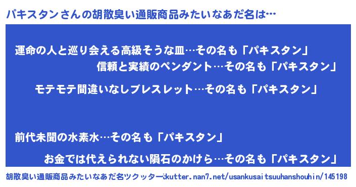 | 男性向けラノベタイトル風あだ名 | 『転生したらパキスタンだった件』 |