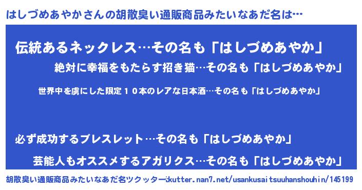 | 意味不明あだ名 | 『住所不定無職はしづめあやか(68歳)』 |