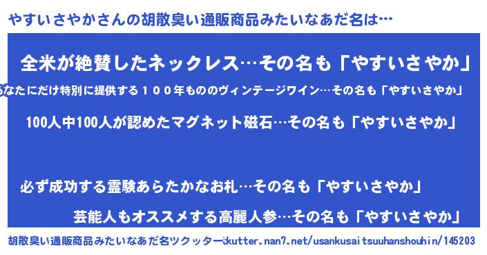 | ヘコむあだ名 | 『やす太郎』『やすふぇ~』 |