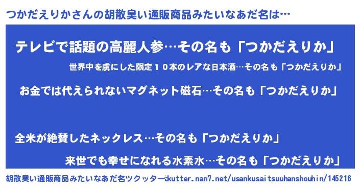 | 男性向けラノベタイトル風あだ名 | 『転生したらつかだえりかだった件』 |