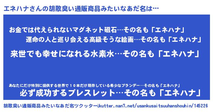 | 意味不明あだ名 | 『永久保存エネハナ』『ペロリンエネハナ』 |