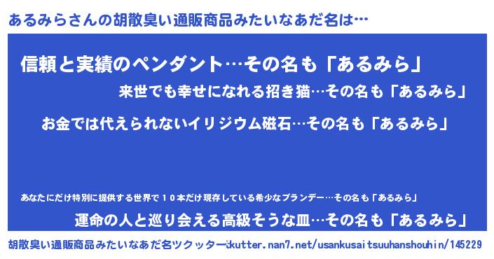 | 女子向けラノベタイトル風あだ名 | 『あるみら恋絵巻』『あるみらの婚約者』 |