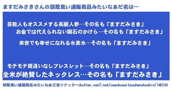 | ヘコむあだ名 | 『ますだみさき(震え声)』『ますを』 |