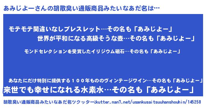 | ヘコむあだ名 | 『あみにゅー』『あみじよー(苦笑)』 |