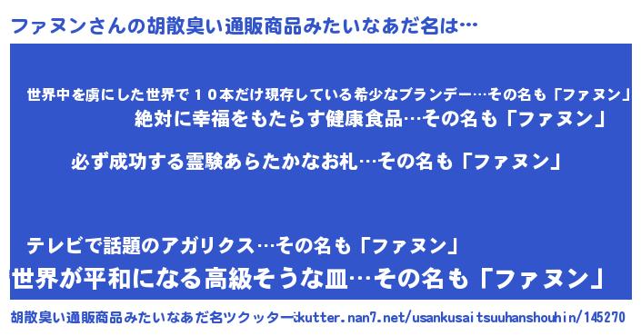 | 意味不明あだ名 | 『ペロリンファヌン』『永久保存ファヌン』 |