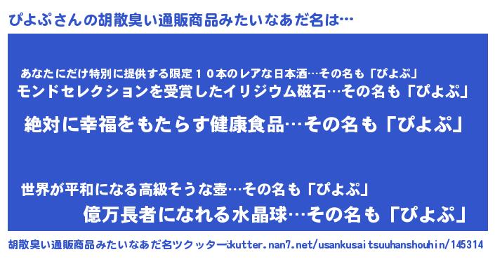 | 意味不明あだ名 | 『永久保存ぴよぷ』『ペロリンぴよぷ』 |