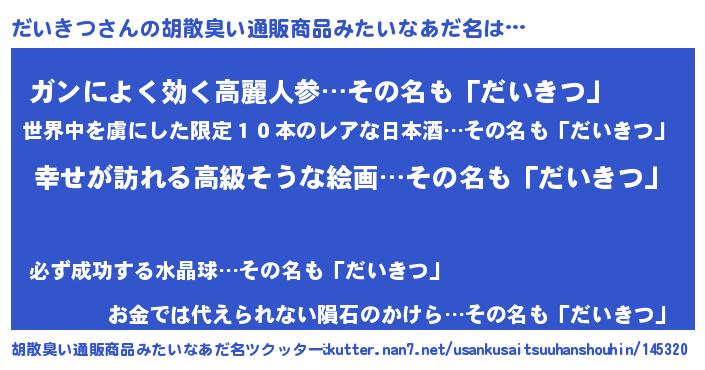 | ヒーロー風カッコイイあだ名 | 『ウルトラだいきつマン』『仮面ダイダー』 |