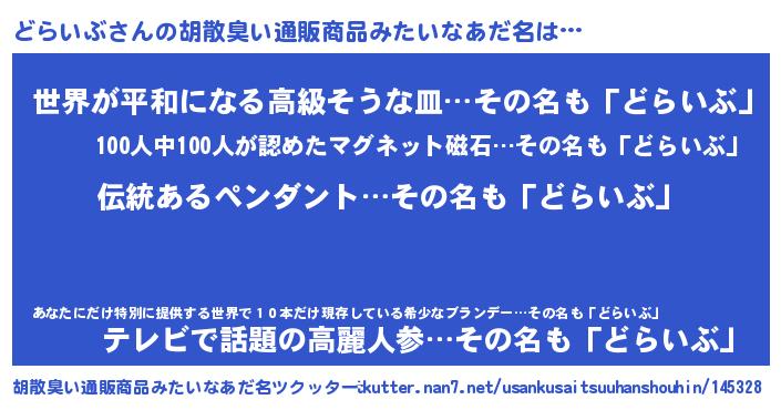 | 意味不明あだ名 | 『とにかく怪しいどらいぶ』 |