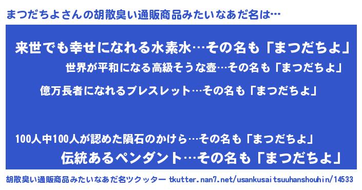 | ヘコむあだ名 | 『まつふぇ~』『まつだちよ(爆)』 |