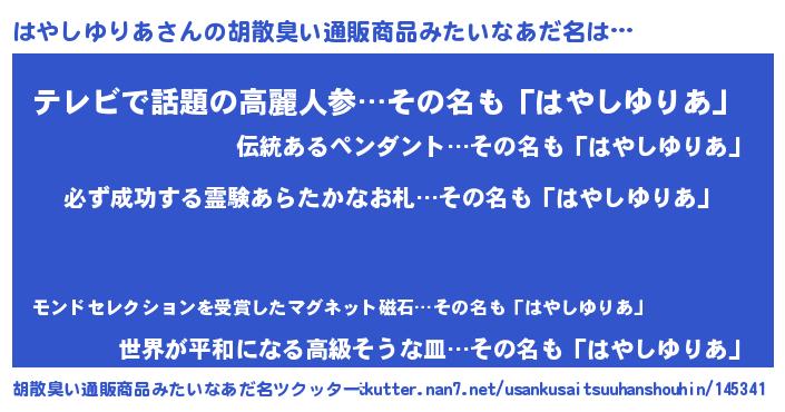 | 肩書あだ名 | 『はやしゆりあ御曹司』 |