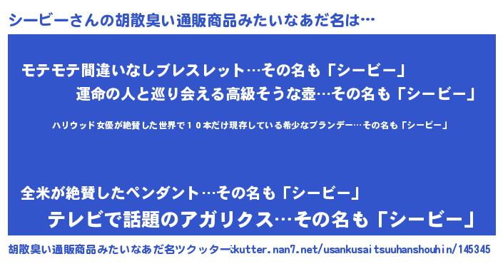 | 意味不明あだ名 | 『住所不定無職シービー(95歳)』 |