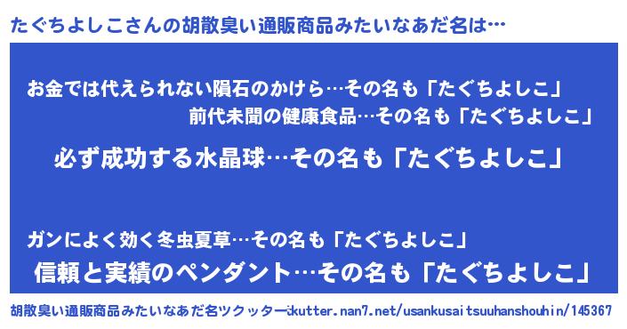| ヘコむあだ名 | 『たぐにゅー』『たぐっちょ』 |