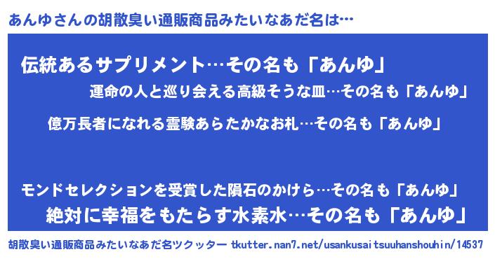 | ヘコむあだ名 | 『あんっふぃ~』『あんお』 |