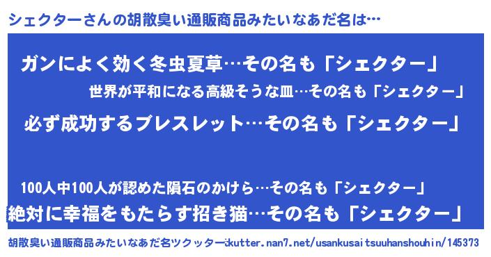 | 男性向けラノベタイトル風あだ名 | 『シェクターの憂鬱』 |