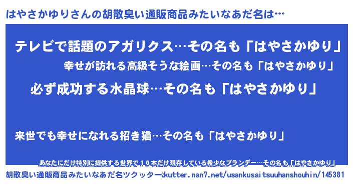 | 男性向けラノベタイトル風あだ名 | 『はやさかゆりの憂鬱』 |