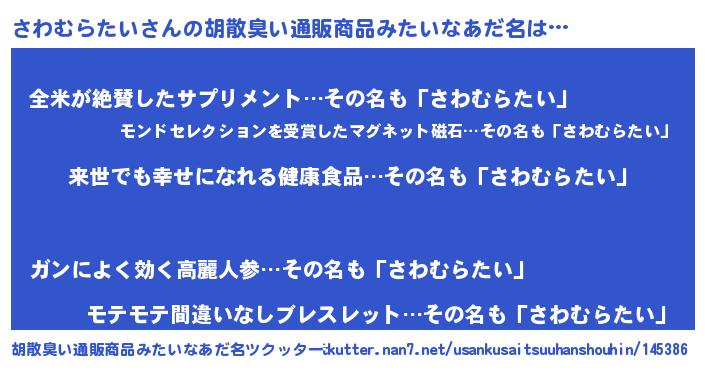 | ヘコむあだ名 | 『さわむらたい(笑)』『さわ太郎』 |