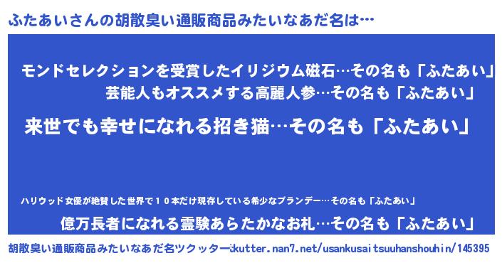 | ヘコむあだ名 | 『ふたあい(小並感)』『ふたもー』 |