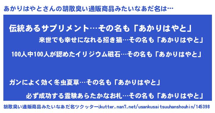 | ヘコむあだ名 | 『あか太郎』『あかにー』『豆乳』 |