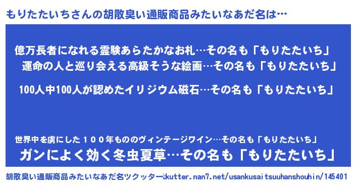 | 意味不明あだ名 | 『眠気覚ましガムもりたたいち味』 |