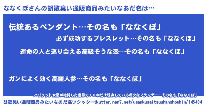 | ヘコむあだ名 | 『酢こんぶ』『なな太郎』『ななにー』 |